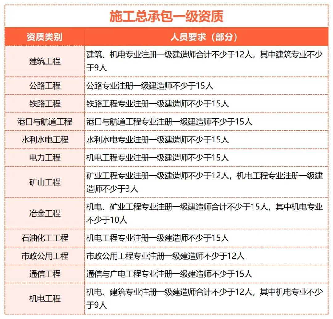 申請(qǐng)施工總承包資質(zhì)注冊(cè)人員要求