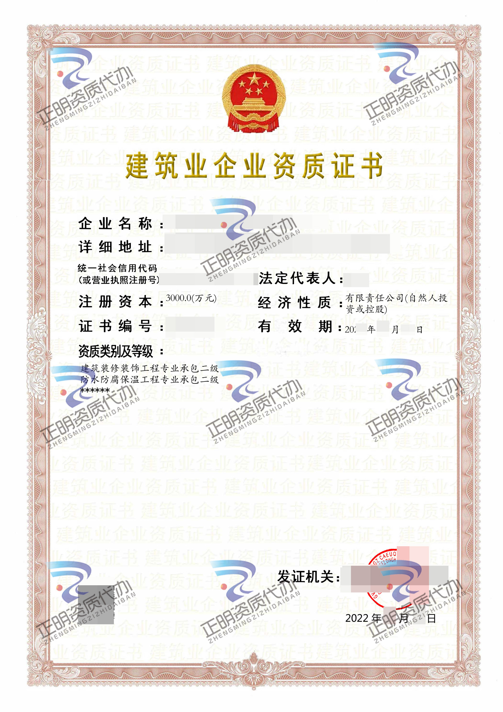 在材料審核通過并公示后,很快為謝總領(lǐng)取了防水防腐保溫工程專業(yè)承包貳級、建筑裝修裝飾工程專業(yè)承包貳級證書。謝總一如既往對我們公司非常滿意,評價也很高,也對資質(zhì)代辦人員的辦事效率贊不絕口。