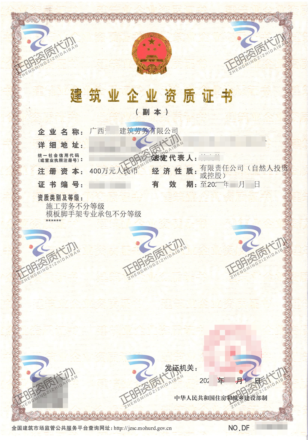 廣西*****建筑勞務(wù)有限公司的劉總,是我們公司的新客戶,通過朋友介紹跟我們公司合作,這次也成功的幫劉總公司辦理了模板手腳架專業(yè)承包不分等級等資質(zhì)。