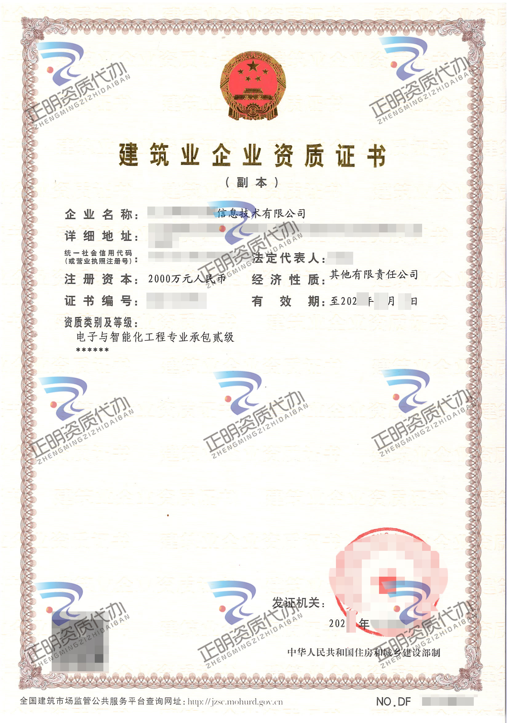 在此期間,我們與劉總進(jìn)行溝通,給吳總指導(dǎo)了資質(zhì)申報(bào)方面的一些問題,所以劉總對我們很信任,選擇和我們公司全方位進(jìn)行合作、申報(bào)提交資料,成功在簽合同3個(gè)月后領(lǐng)到了電子與智能化工程專業(yè)承包貳級資質(zhì)證書。